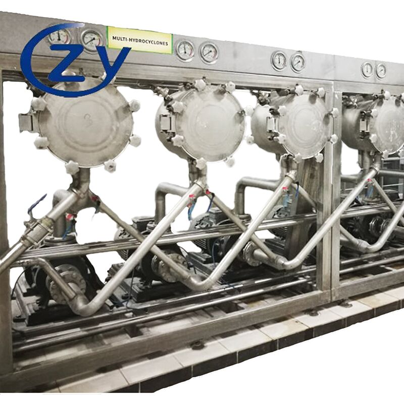 मॉड्यूलर हाइड्रोसाइक्लोन इकाई एकाग्रता, वसूली, धोने और एक शरीर में अलग करने को एकीकृत करती है, जिससे स्टार्च उत्पादन की मुख्य तकनीकी आवश्यकताओं के लिए एक पूर्ण समाधान प्रदान होता है।